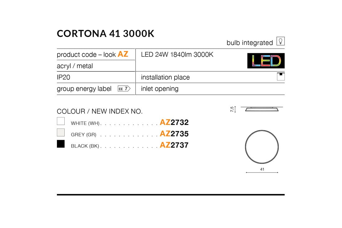 AZ2737 CORTONA 41 3000K 1840lm PLAFON CZARNY LED 24W AZZARDO