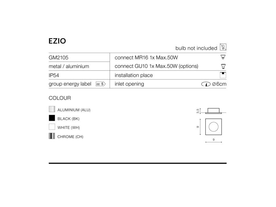 = WYSYŁKA 48H = LAMPA OCZKO WPUSZCZANE IP54 AZ0812 Lampa techniczna Ezio 1 Black GM2105 BK AZZARDO