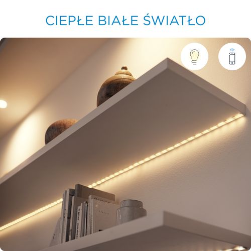 Stwórz przytulną atmosferę dzięki ciepłemu, białemu światłu. Inteligentne światło, pozwala na zmianę odcieni białego światła, od ciepłego (zachód słońca) po chłodne (światło w południe). Dzięki temu możesz dostosować światło do swoich codziennych czynności i potrzeb.