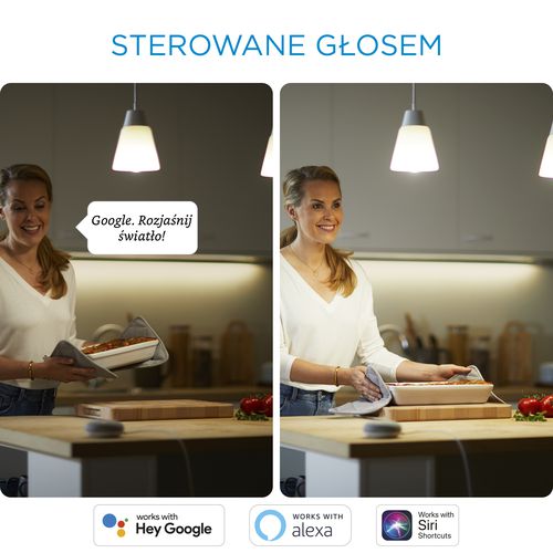 Systemem inteligentnego oświetlenia WiZ możesz sterować również za pomocą głosu. Dzięki komendom głosowym możesz aktywować (włączyć, wyłączyć, przyciemniać, rozjaśniać) oświetlenie WiZ z pomocą systemów rozpoznawania głosu takim jak Asystent Google, Alexa (Amazon) oraz Siri.
