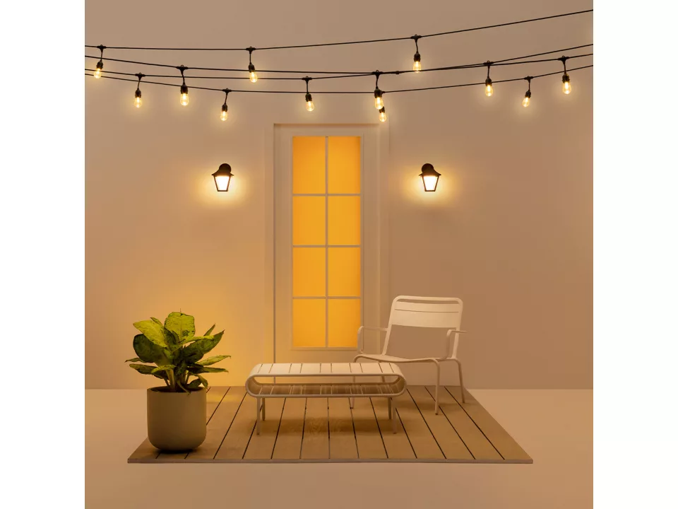 Łącz różne tryby świateł białych i kolorowych, tworząc idealne oświetlenie na każdą chwilę w ogrodzie. Zapisz swoją aranżację i wybieraj ją w dowolnym momencie za pomocą aplikacji, głosu lub akcesorium sterującego.