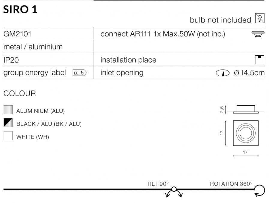 AZ0769 Lampa techniczna Siro 1 Black GM2101 BK/ALU AZZARDO == WYSYŁKA 48H ==
