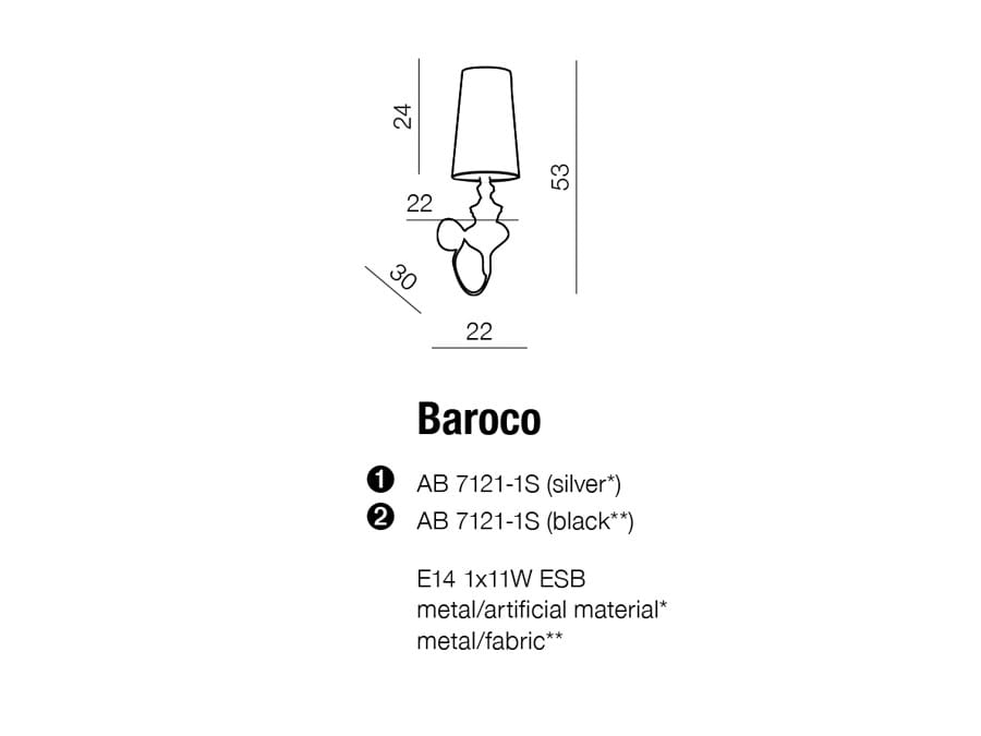 Kinkiet Baroco Silver AZzardo MC681-2 SILVER / AZ030