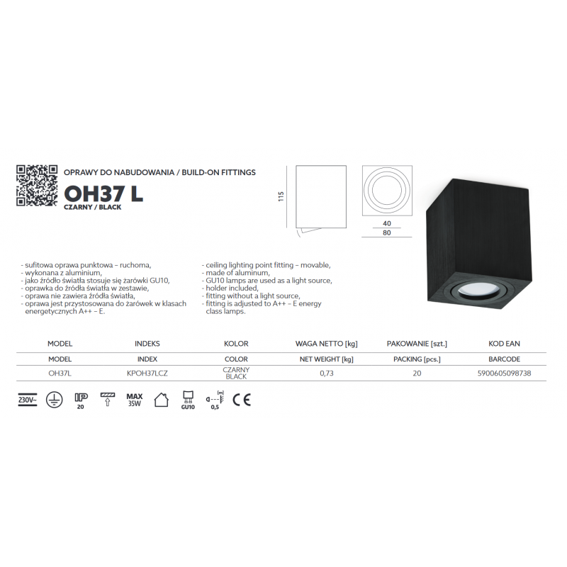 Kobi Oprawa Punktowa Oh36S Czarna Kpoh36Sc