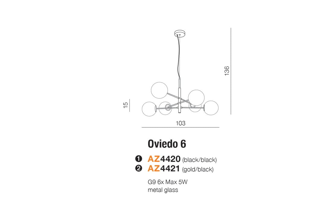 LAMPA WISZĄCA OVIEDO 6 6XG9 Czarny / Złoty AZ4421 AZZARDO negocuj cene