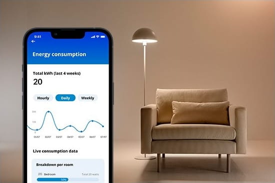 Ta inteligentna wtyczka Smart plug ma wbudowany miernik mocy, który monitoruje zużycie energii przez podłączone do niej urządzenie. Dowiedz się, ile energii zużywa Twoje urządzenie, patrząc na wizualne podsumowanie w aplikacji WiZ.